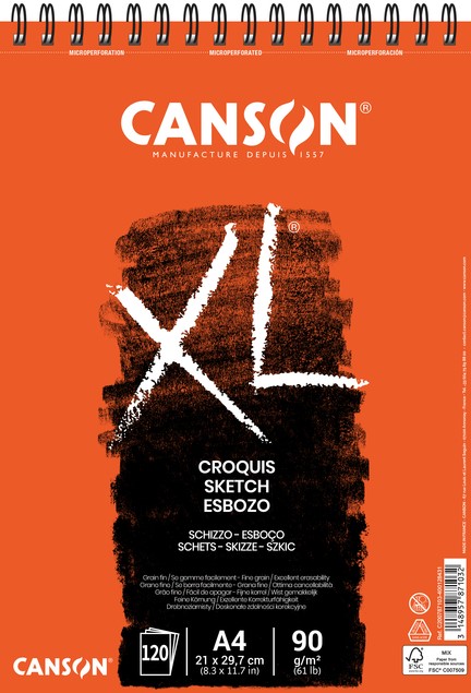 • Aan de korte zijde gespiraleerd album Canson XL Croquis is een licht, ivoorkleurig papier dat speciaal ontwikkeld werd voor het snelle schetsen, ontwerpen en voorstudies.