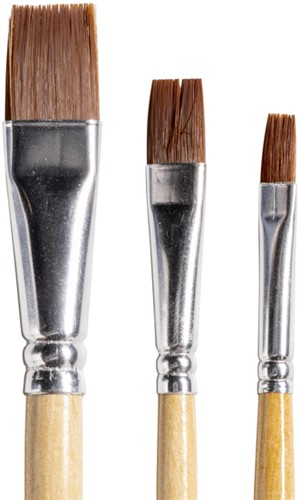 • Deze set bevat 3 breedtes, nummer 8 (8,3mm) , nummer 12 (12,3mm) en nummer 16 (17,9mm) Blank houten steel. Synthetisch haar.