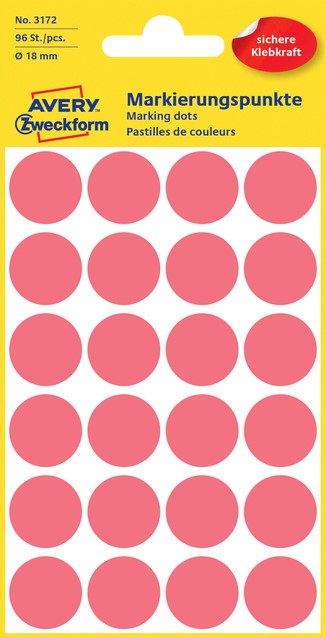 Etiket Avery 3172 rond 18mm lichtrood 96 stuks