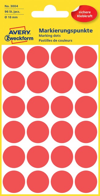 Etiket Avery 3004 rond 18mm rood 96 stuks