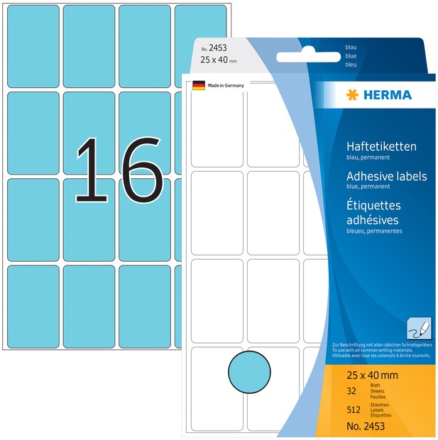 Etiket HERMA 2453 25x40mm blauw 512 stuks