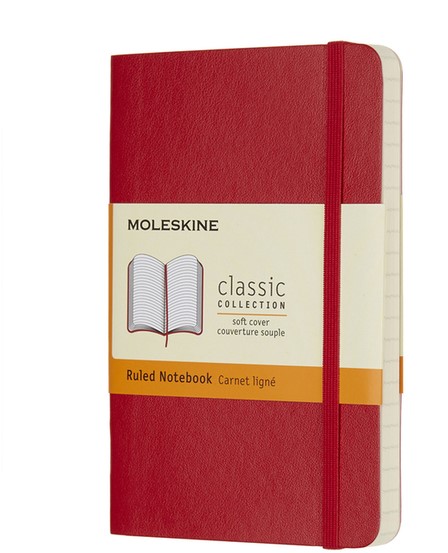 Een flexibele versie van het legendarische notebook, nu in opvallend rood. Notebooks met zachte kaft, verkrijgbaar in verschillende afmetingen en met verschillende pagina-indelingen, zijn robuuste en toch op natuurlijke wijze aanpasbare hulpmiddelen voor het maken van notities; ze hebben de iconische Moleskine-kenmerken, zoals afgeronde hoeken, leeslint, zuurvrij, ivoorkleurig papier, elastische sluiting en uitbreidbaar binnenvak en de geschiedenis van Moleskine.