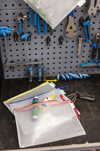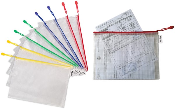 • Versterkte transparante opbergtassen van A4-formaat met ritssluiting.