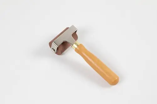 Hoogwaardige linoleumroller met stevige handgreep. Dankzij het massieve rubber is de roller ideaal om drukinkt uit te rollen voor linoleumprints enz.. . Rol dikke drukinkt in een lege verfbak uit tot een dunne, gelijkmatige laag. Daarna rolt u de inkt op een uitgesneden drukblok van linoleum of rubberRol heen en weer in verschillende richtingen, van de ene rand van het drukblok tot de andere Leg het te bedrukken papier op het drukblok en leg er vervolgens ter bescherming een stuk papier of karton op. Als u geen grafische pers hebt, kunt u de roller gebruiken als een goed alternatief voor kleinere afbeeldingenRol heen en weer met de linoleumroller bovenop het beschermende papier – verander van richting en rol van de ene rand van het drukblok eronder tot de andere totdat de inkt gelijkmatig is verdeeldVerwijder het beschermende papier, neem het bedrukte papier van het drukblok en laat het drogen.  Reinig de roller in lauw water en droog af met een papieren handdoek of een theedoek. Het voordeel van het gebruik van een roller van massief rubber in plaats van een verfroller van schuim is dat de licht kleverige drukinkt zich in een dikke, gelijkmatige laag op de roller afzet, terwijl een schuimroller slechts een deel van de inkt absorbeert. Als u dus een gelijkmatig en perfect afgedrukte afbeelding wilt, raden we u aan om een massief rubberen roller te gebruiken.