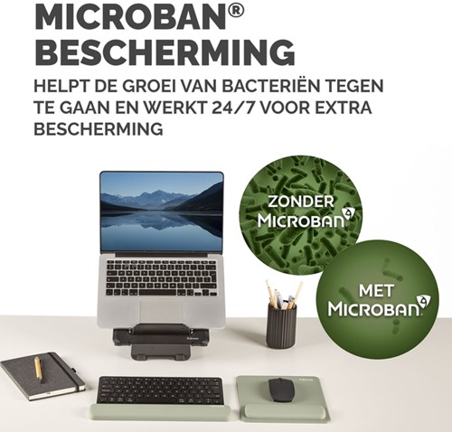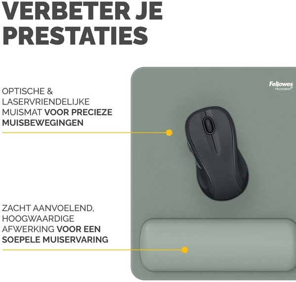 De HEX Cushion Technology™, waarvoor patent is aangevraagd, zorgt voor een gelijkmatige ondersteuning en supercomfort tijdens het muisgebruik. De zachte, stofwerende polssteun heeft een mooie afwerking en zorgt voor een soepele muiservaring. De ingebouwde Microban®-bescherming helpt de groei van bacteriën tegen te gaan en werkt 24/7 voor extra bescherming van het product. Bescherm je bureau en verbeter de prestaties van je muis met deze muismat die geschikt is voor optische en lasermuizen. Gemaakt van 69% gerecycled materiaal en 100% recyclebaar met het terugnameprogramma van Fellowes. Gemaakt om lang mee te gaan met 5 jaar beperkte garantie. Getest door FIRA International Ltd om te voldoen aan de ergonomische eisen van de Europese gezondheids- en veiligheidswetgeving: EN ISO 9241-5.