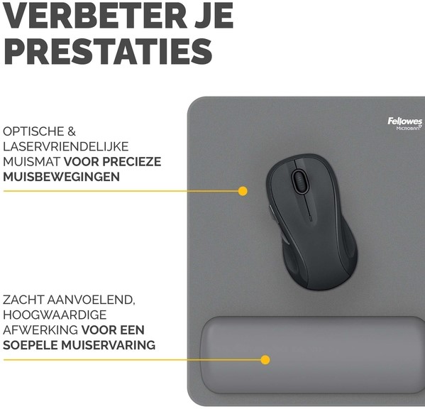 Bescherm je bureau en verbeter de prestaties van je muis met deze muismat die geschikt is voor optische en lasermuizen. Gemaakt van 69% gerecycled materiaal en 100% recyclebaar met het terugnameprogramma van Fellowes. Gemaakt om lang mee te gaan met 5 jaar beperkte garantie.