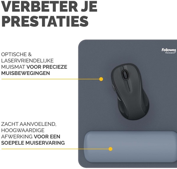 Bescherm je bureau en verbeter de prestaties van je muis met deze muismat die geschikt is voor optische en lasermuizen. Gemaakt van 69% gerecycled materiaal en 100% recyclebaar met het terugnameprogramma van Fellowes. Gemaakt om lang mee te gaan met 5 jaar beperkte garantie.