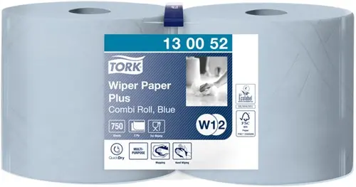 Poetspapier Tork W2 Plus Premium 2-laags 750 vel blauw 130052
