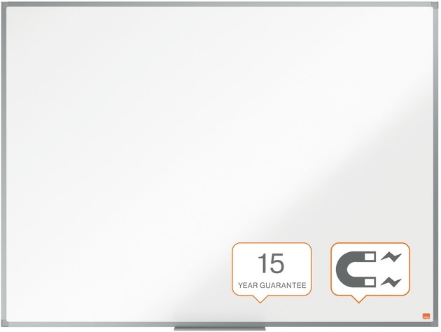 • Magnetisch stalen whiteboard met een geanodiseerd aluminium frame. Bevestigd aan de wand door hoekmontage en voorzien van een pennengoot. Het magnetische gelakt stalen whiteboard oppervlak levert een verhoogde uitwisbaarheid voor regelmatig gebruik.