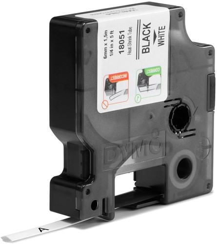 Labeltape Dymo Rhino industrieel krimpkous 6mm zwart op wit