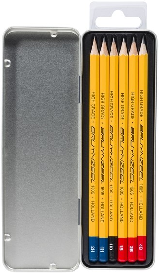 Grafietpotlood Bruynzeel Burotek blik à 6 hardheden grijs