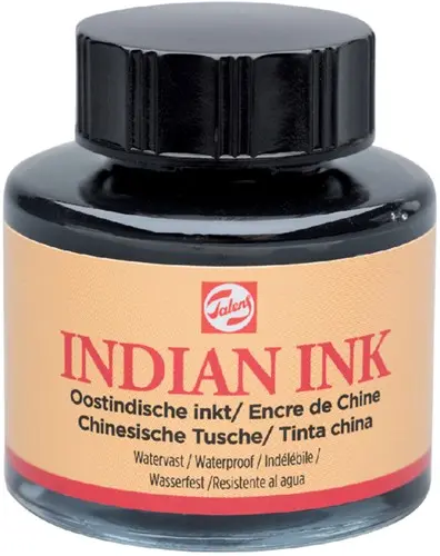 • Oost-Indische inkt is verdunbaar met water en na droging watervast.