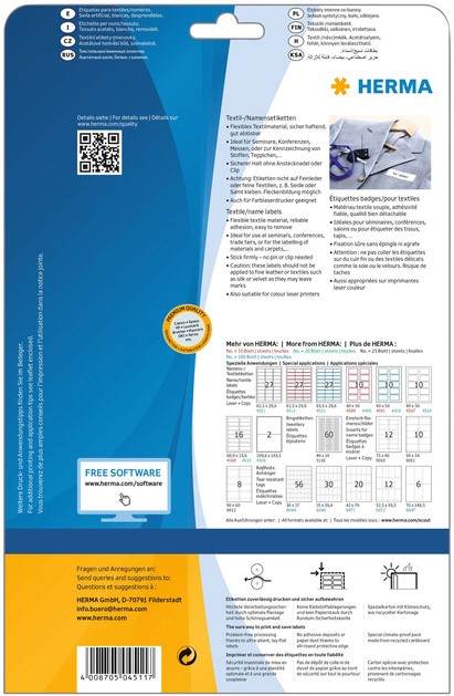 • Etiketten van acetaatzijde, op A4-vellen, zelfklevend.