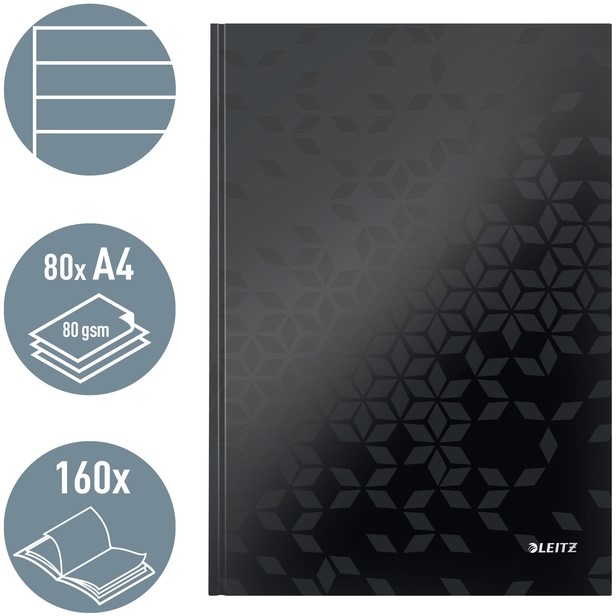 Notitieboek Leitz WOW A4 160blz 90gr lijn zwart