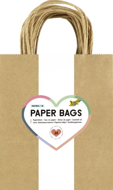 Tas met handvat Folia kraftpapier 125gr 18x21x8cm 20 stuks naturel