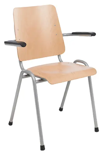 • De Wachtkamerstoel 673WS is een goed zittende 4 poot stoel. De 673WS is een stoel met armleuningen of zonder armleuningen. Stoel met 22 mm rond buizenframe. Rug en zitting in blank beuken multiplex, transparant gelakt.