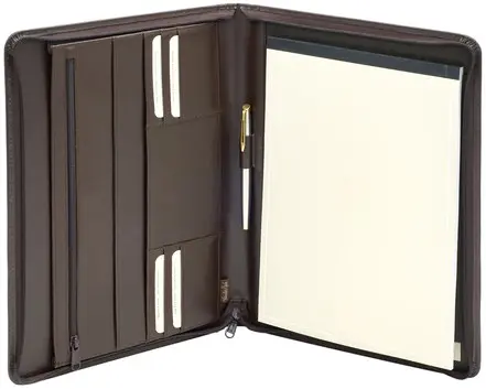 Schrijfmap van der Spek 384 A4 generfd leer met rits bruin