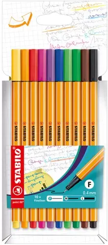• De fineliner STABILO point 88 in een etui à 10 kleuren