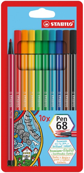 • De premium viltstift STABILO Pen 68 in een etui à 10 kleuren