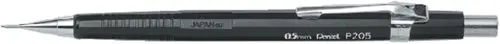 Of je nu op kantoor, in de klas of op de bouwplaats werkt de Pentel P205 staat altijd voor je klaar. Vast 4mm geleidingsbuisje voor technisch tekenen langs liniaal en in sjabloon. Kunststof houder met metalen voorstuk, clip en drukknop. Grip met fijne ribbels. Zes stuks HB stiftjes.