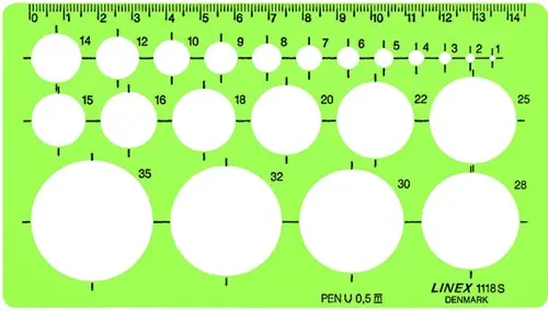 Sjabloon Linex 1118S 22 cirkels 1-35mm met inktvoetjes