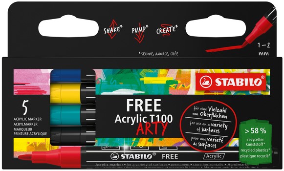 Acrylmarker STABILO Free Acrylic T100 Royal assorti 5 stuks