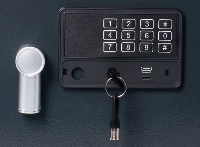 • De Pavo high security elektronische kluis (size XL) met solide behuizing en dubbele stalen vergrendelingsbouten is ideaal voor verschillende professionele omgevingen.
