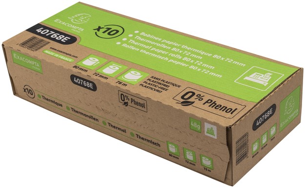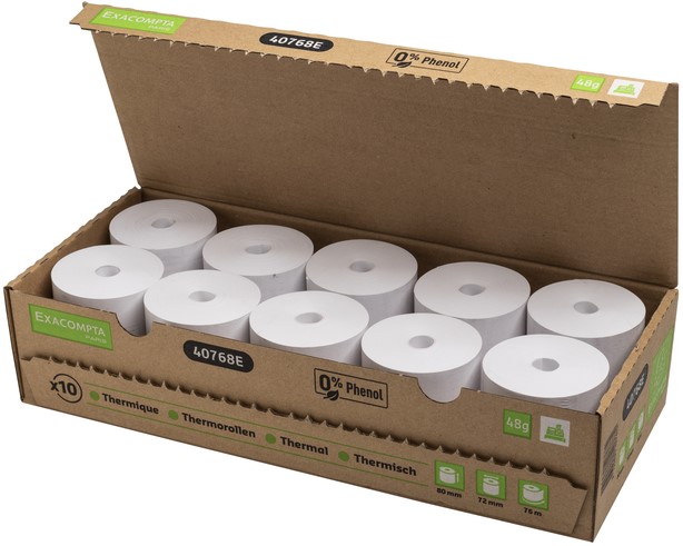 • 1 laag thermisch papier 48g/m2 fenol- en plasticvrij.