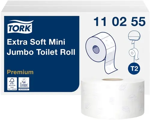 • Voeg zonder extra kosten luxe toe aan drukbezochte toiletten met het Mini Jumbo-systeem van Tork. De Jumbo-toiletrollen zijn ideaal voor sanitaire ruimten met gemiddelde tot hoge bezoekersaantallen: ze bevatten veel meer papier dan standaardrollen. Het personeel is minder vultijd kwijt en houdt zo tijd over voor andere taken. Met deze extra zachte Jumbo-rollen bestaat er minder risico op lege dispensers. Gebruik de rollen in onze dichte T2 Toiletpapier Dispensers voor bescherming en een betere hygiëne. De voordelen op een rijtje: