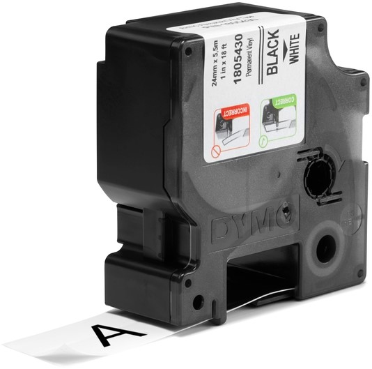 Labeltape Dymo Rhino 18054 vinyl 24mmx5.5m zwart op wit