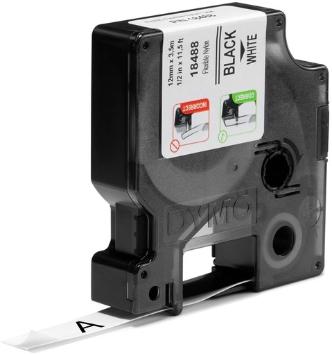 Labeltape Dymo Rhino 18488 nylon 12mmx3.5m zwart op wit