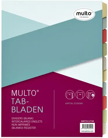 Tabbladen Multo A4 23R 10-delig karton assorti