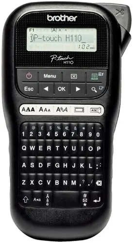 • Met de draagbare PT-H110 labelprinter ontwerpt en print u snel duurzame labels met behulp van het ingebouwde toetsenbord en het grafische display.