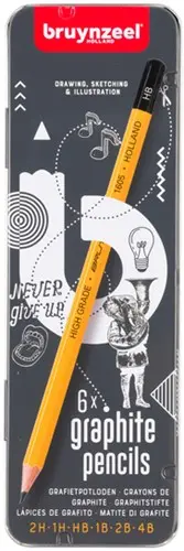 • Een stoer blik met 6 glutenvrije grafietpotloden van Bruynzeel, perfect voor het tekenen en schijven op school.