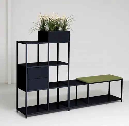 Er zijn verschillende opbergelementen beschikbaar, met deurtjes, met uittreklade of een plantenbak.