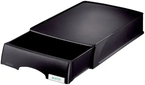 • Een uniek archiverings- en opbergproduct in de kleur zwart, welke onderdeel kan zijn van het Leitz Plus modulaire brievenbaksysteem of op zichzelf gebruikt kan worden. Ontwerp en kleur is afgestemd op de Leitz Plus reeks bureau-accessoires.