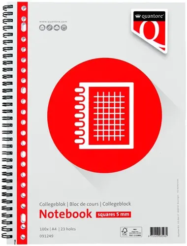Collegeblok Quantore A4 23-gaats ruit 5mm 100vel