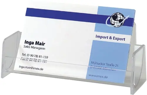 • Of het nu op de beurs, in een showroom of op de adviesbalie is - in deze houder voor visitekaartjes presenteert u uw visitekaartjes opvallend en goed gesorteerd.