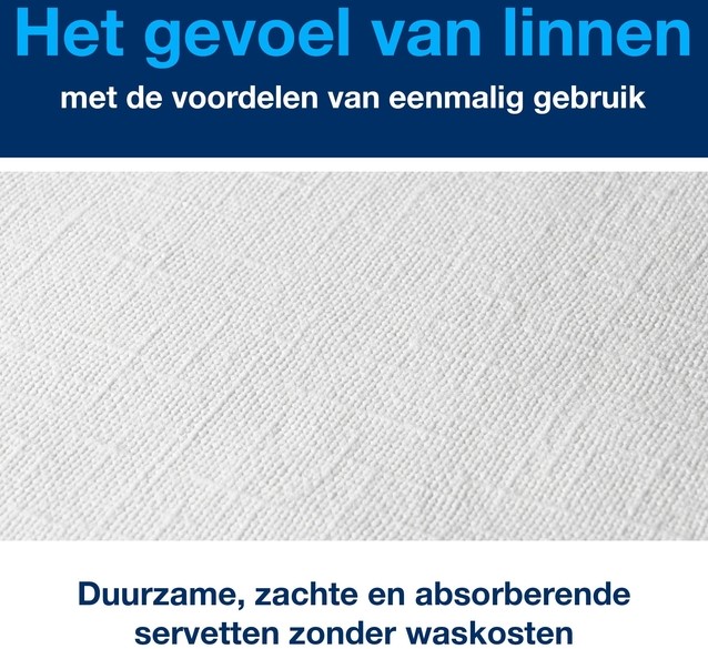 • Kwaliteit is belangrijk in restaurants en met standaard papieren servetten maakt u niet altijd de juiste indruk bij gasten. De papieren dinerservetten van Tork LinStyle® voelen aan als kwaliteitslinnen, maar zijn voor eenmalig gebruik. Wassen is dus niet nodig. Onze servetten zijn extra absorberend en sterk, zodat ze een hele maaltijd meegaan. De voordelen op een rijtje: