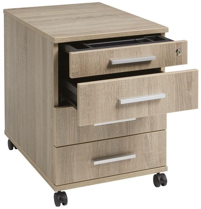 Verrijdbaar ladeblok Manager 3 laden + pennenlade - Blad- Halifax Eik
