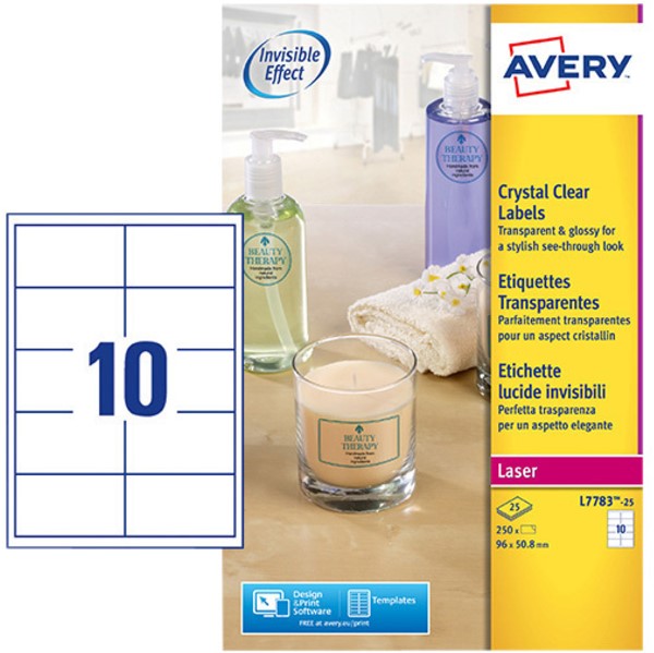 Etiket Avery L7783-25 96x50.8mm transparant 250 stuks