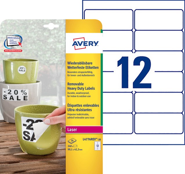 Etiket Avery L4776REV-20 99.1x42.3mm wit 240 stuks