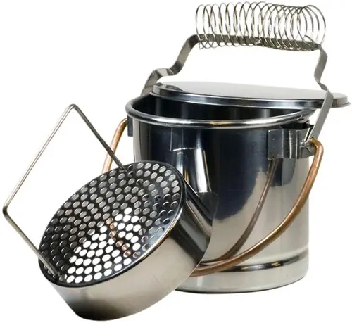 Verchroomde penselenwasbak Ø 15 cm, hoogte 14 cm (incl. spiraal 23 cm, met hengsel en deksel, voor het behoud van uw penselen en kwasten.