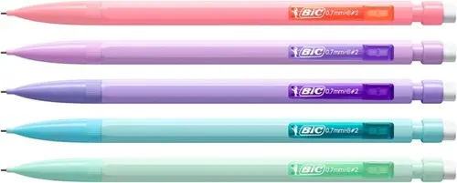 BIC Matic HB 0.7mm grafiet drukpotloodje in 5 trendy pastel kleuren.