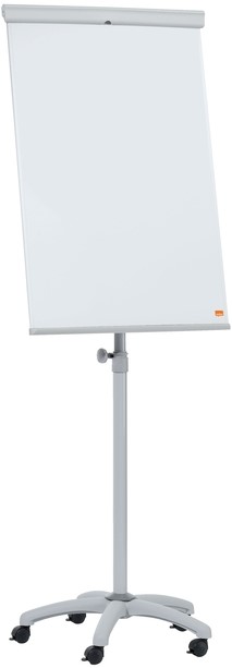 Magnetisch schrijfbordoppervlak (68 x 105 cm) inclusief pennenbakje. Snelsysteem voor het verwisselen van flipoverblokken, geschikt voor alle gangbare flipoverblokken. Zwenkwielen van kunststof (Ø 60 cm) met 5 vergrendelbare wielen, traploze hoogteverstelling van 180 tot 200 cm totale hoogte.