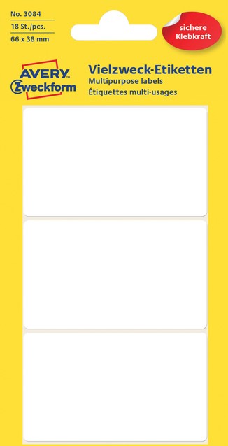Etiket Avery 3084 66x38mm wit 18 stuks