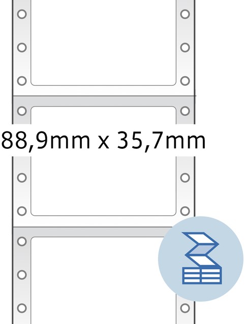 Computeretiketten, doorlopend, met pinfeedrand. In de beste kwaliteit: gegarandeerd doorlopend, zonder onderbreking.