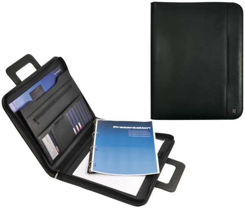 Door de uitneembare ringband kun je documenten goed georganiseerd meenemen naar een afspraak. Je kunt bijvoorbeeld een presentatie uit de map halen om te laten zien aan een prospect.