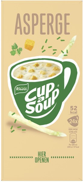 Cup-a-Soup Asperge: een snelle, hartige opkikker die je weer energie geeft om door te gaan! Deze heerlijke soep is gemaakt met duurzaam geteelde asperges, en dat proef je!