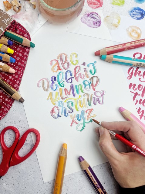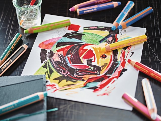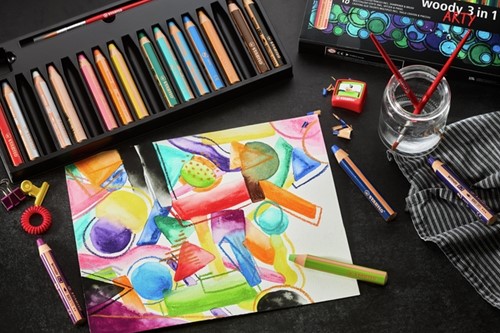Het 3-in-1-potlood; kleurpotlood, waskrijt en aquarel potlood ineen.